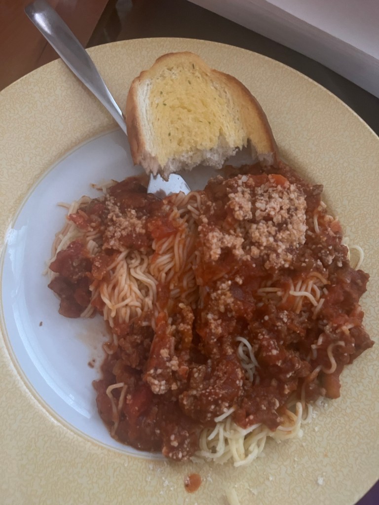 Good old spaghetti one night – I was able to brown the meat in the morning and that made dinner time super fast and easy.