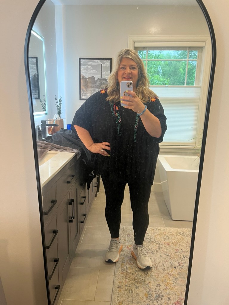 We are having a weird teacher only spirit week this week for teacher appreciation week and Monday was dress for retirement day but it was also Cinco de Mayo. I wore leggings that made me hot and my Mexican inspired kimono. I didn’t know what to do!