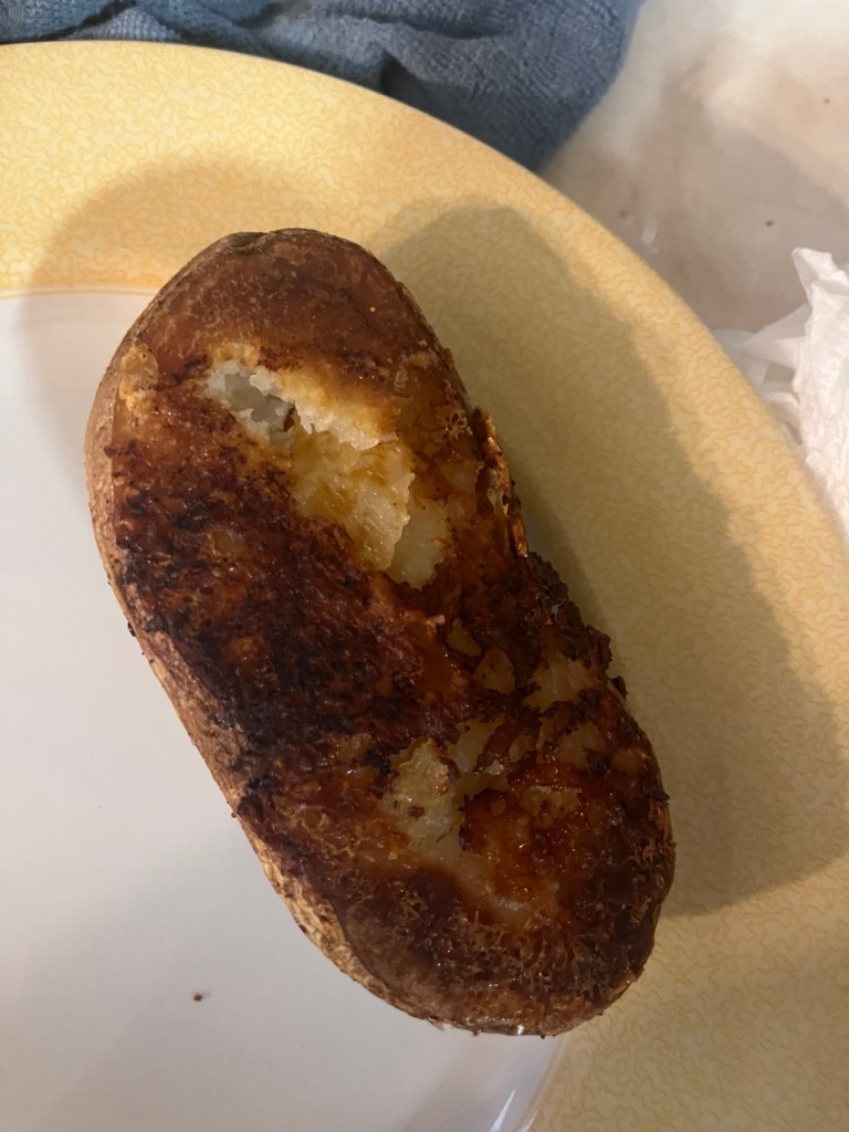 I cook something pretty much every day. I made sheet pan bacon for BLTS and sheet pan broccoli and then I also made half baked potatoes face down on butter and grated parmesan. They are so good this way!