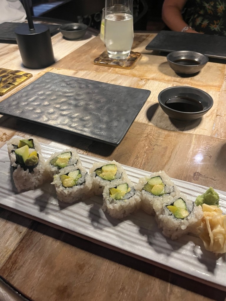 As much as I enjoy sushi, I feel like each piece is really one bite and that makes my dinner over very quickly. Even if the piece is larger it is hard to bite in half without making a mess. It’s a challenge for me to eat!