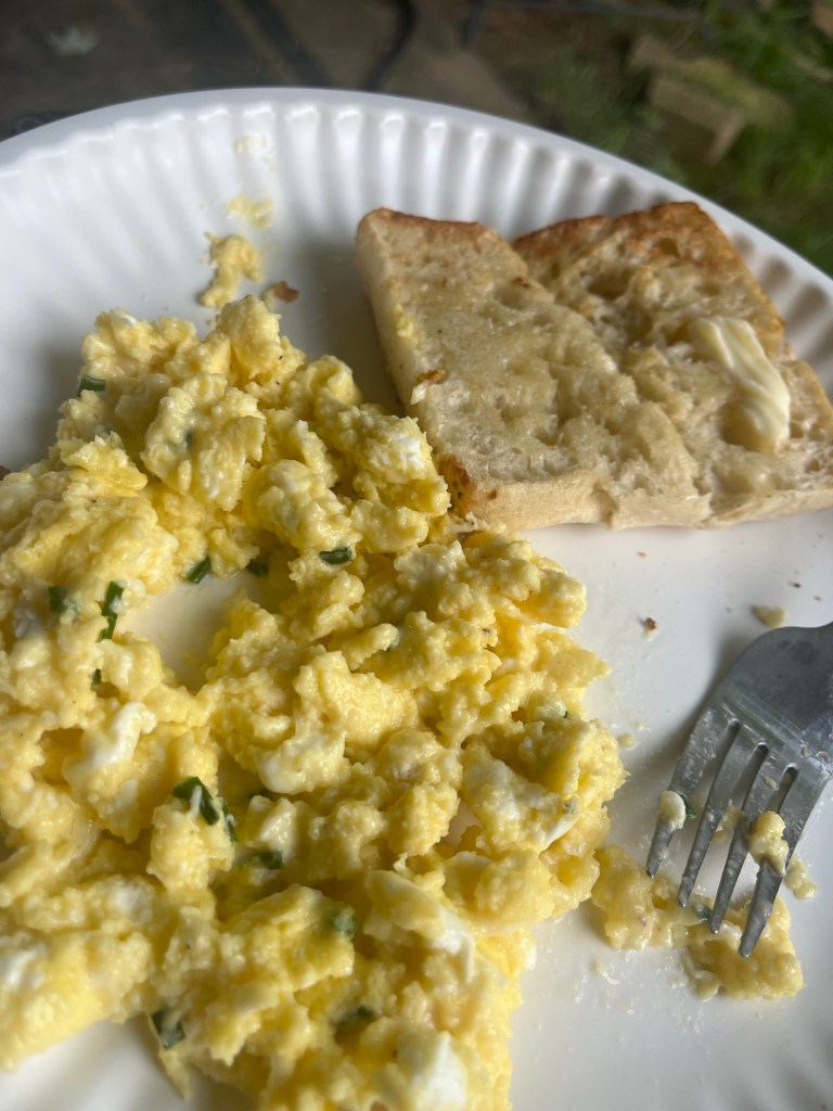 And, you guys…two eggs, a half cup of cottage cheese, and fresh chives – This is delicious for your breakfast!