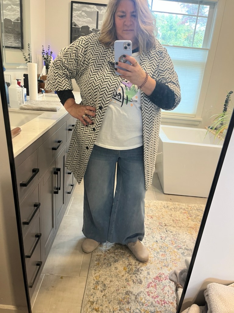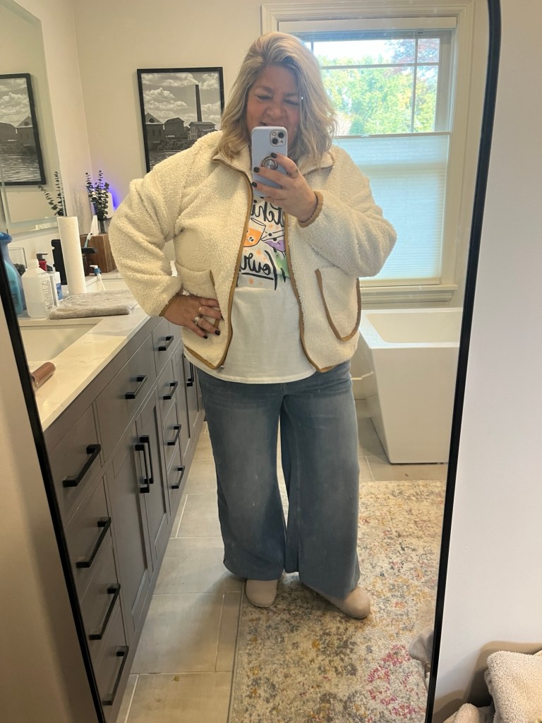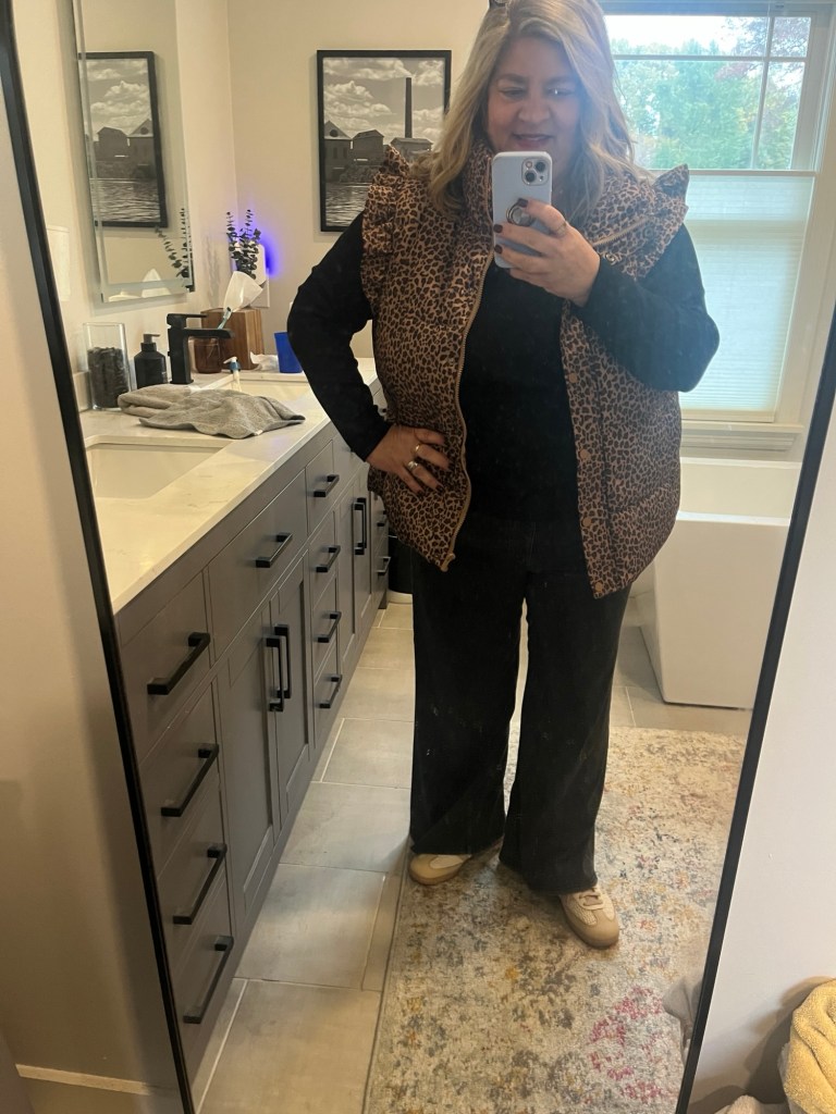 I love all of my jackets and warm layers even if right now I only wear them for about 3 hours in the morning. I probably have way more than I need but I love them and rotate them all in. I did a little close clean out yesterday getting rid of 3 pairs of denim that just didn’t do anything for me anymore. Same with several tops that I had kept but struggled to wear. Making space for what I have (and what I might add, lol!). You have some fun pieces here, that ruffled vest is so cute!