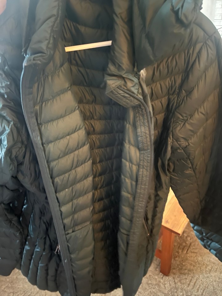 I bought this packable 32 Degrees brand evergreen color coat for my UK trip in December of 2023. I don’t think I wore it once. It wasn’t very cold there. And I needed my rain jacket every day, so I just layered thick sweaters underneath the black rain jacket you see at the beginning of the post.