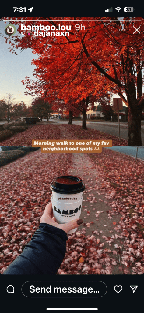 9. I agree that the trees around us are just as pretty as the ones in the woods! I would prefer to live in a place surrounded by trees anyway. I have been turned off oatmilk ever since I read/considered about how it’s really just liquid carbs because it’s oats. It crashes your blood sugar. I think that now every time I see an influencer peddling an oatmilk something or other. Unless, of course, you have issues with dairy!