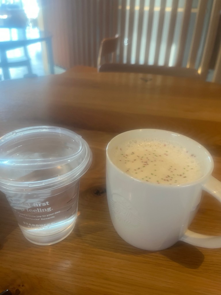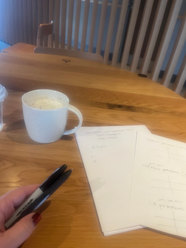 I had my second week of tutoring a high school boy in Spanish this week. We meet at a Starbucks. I get there a bit early, get a coffee in a real mug, and get prepared.