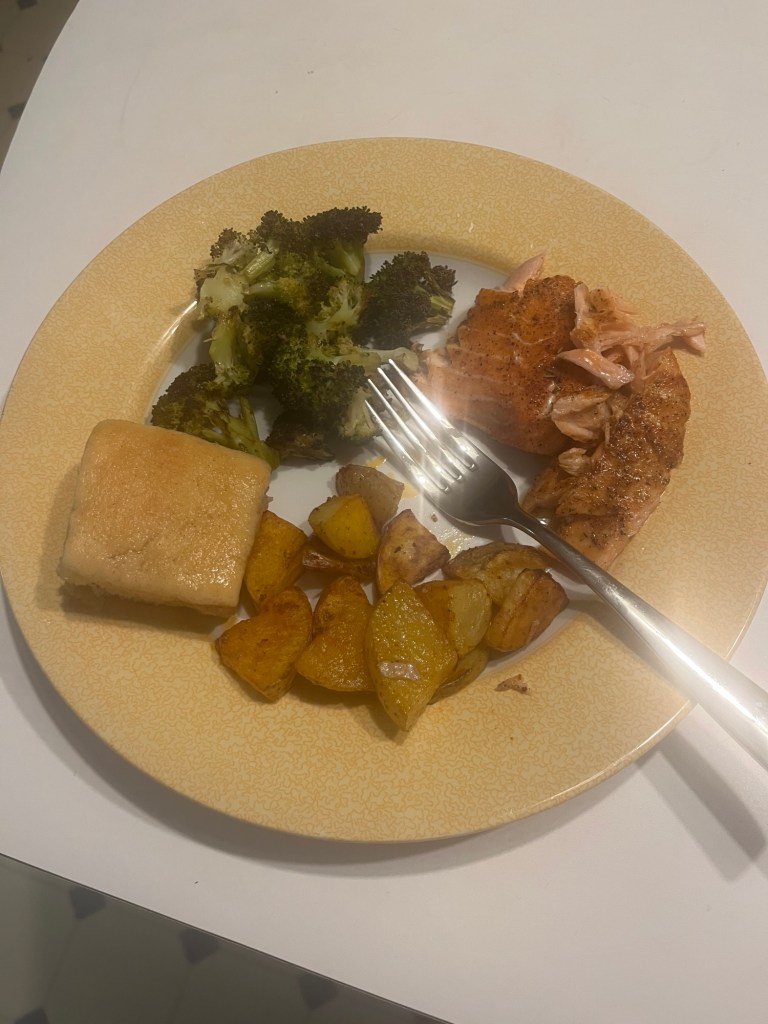 I also made chicken cordon bleu and then after three nights of a pretty decent meal I was done. I decided to order our favorite mediterranean last night.