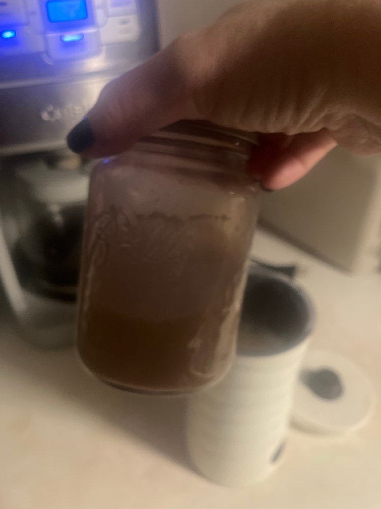 I made more sugar cookie creamer this week and it’s even better. Am I never going to have to buy creamer again? This time I reduced the sugar content and did half white sugar and half brown sugar.