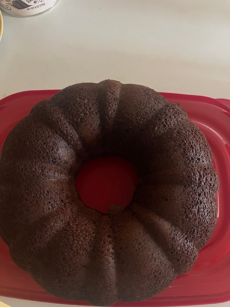 I made a cake and tried a hack I had heard of – you put the cake on the lid and use the body of the container as the “new” lid.