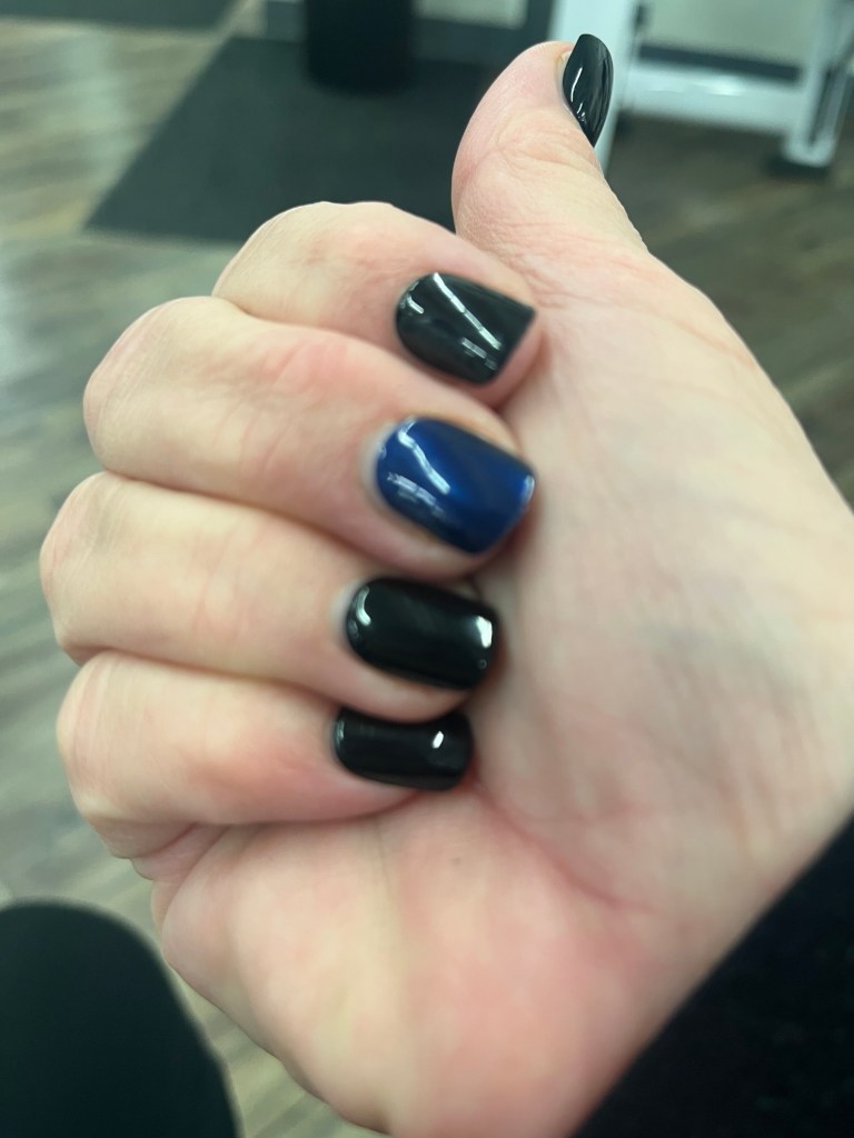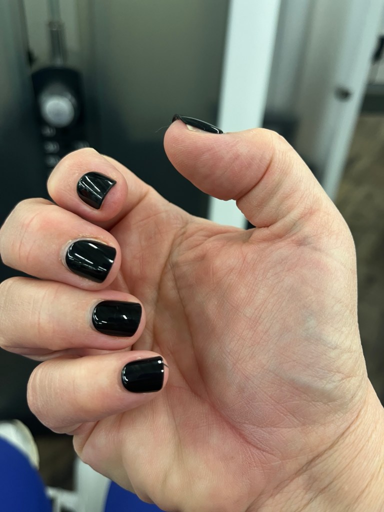 I got to the gym the morning after doing my nails and realized that I did one navy press on the night before. Oopsie.