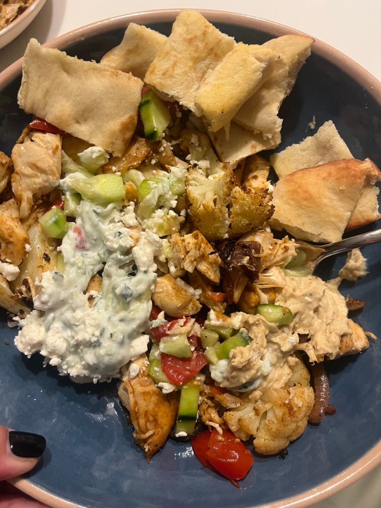 We had mediterranean chicken and cauliflower bowls for dinner and this is one of my favorite types of meals.