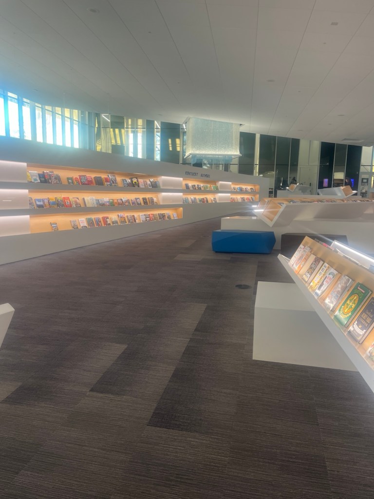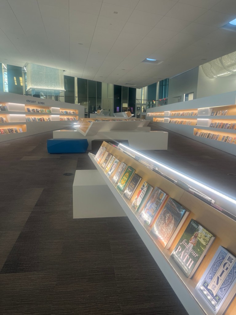 Let’s go back to Thursday late afternoon. I went to a different library branch for an event. Look how modern it is with the books laid out.