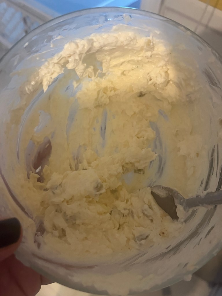 I also re-created the spread that the chef taught us. It is a butter/cream cheese mixture with relish, grated onion, and spices.