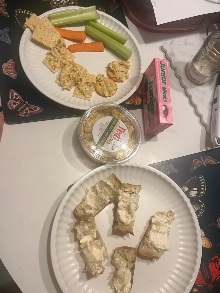 Tom is so tired by Friday so I usually order food or make something rather than go out. We decided on frozen pizza, but I had some pimento cheese and the spread I made on some bread and some V Day Junior Mints out for him.