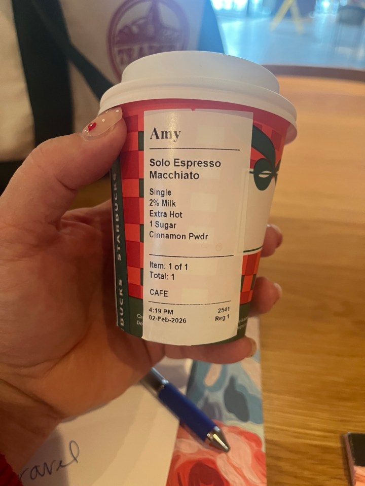 Solo espresso macchiato, single shot of espresso, extra hot with one sugar and a dash of cinnamon. I heard about this on IG. I get there early and order, so I am ready for my student. It’s going well. He wants to chat about his new car, his summer job, and things like that. I feel like we have connected. It’s hard because I don’t love the methodology his teacher uses but I am trying to keep the old boca shut. I brought him colorful index cards from Dollar Tree for him to make his flashcards. Old school, baby. It works.