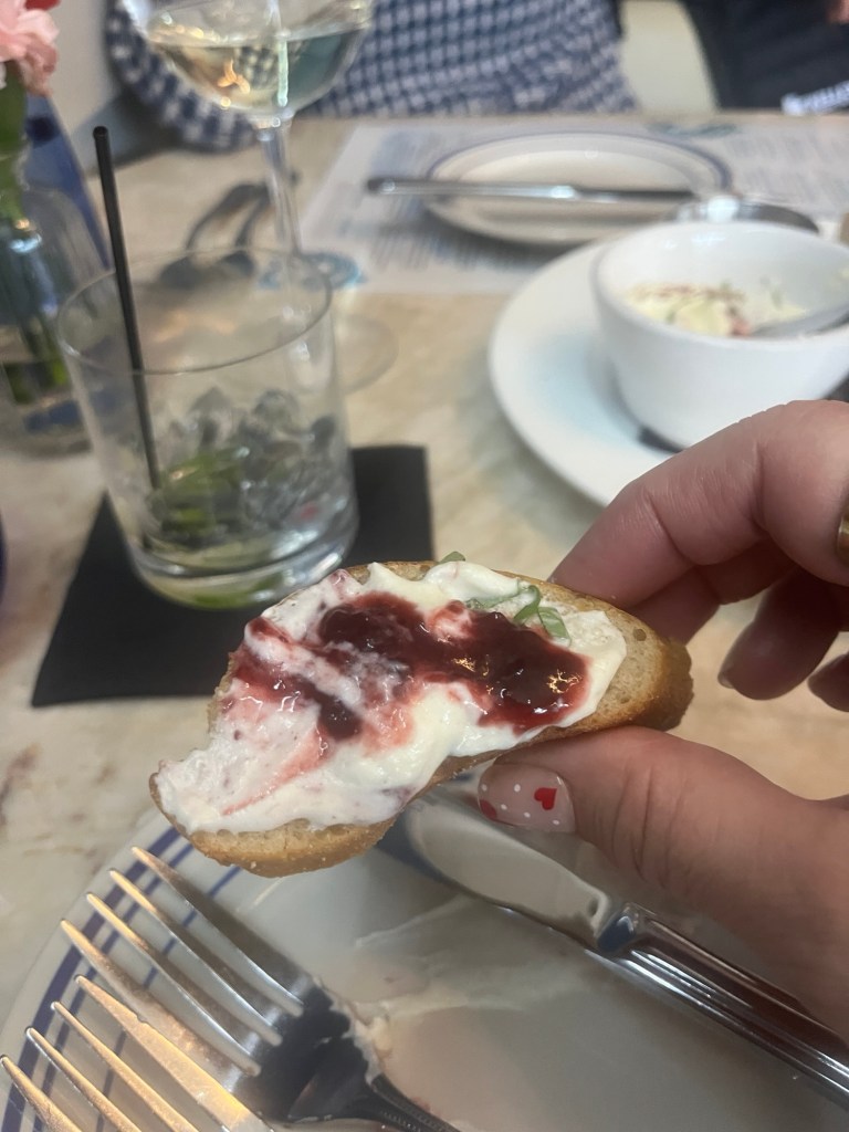 I had a happy hour with a new-ish friend. It’s Tom’s boss’ wife (she and the boss are younger than Tom and I) and we are always friendly, but we have never done anything just us before. We ordered the goat cheese with strawberry jam – so good!