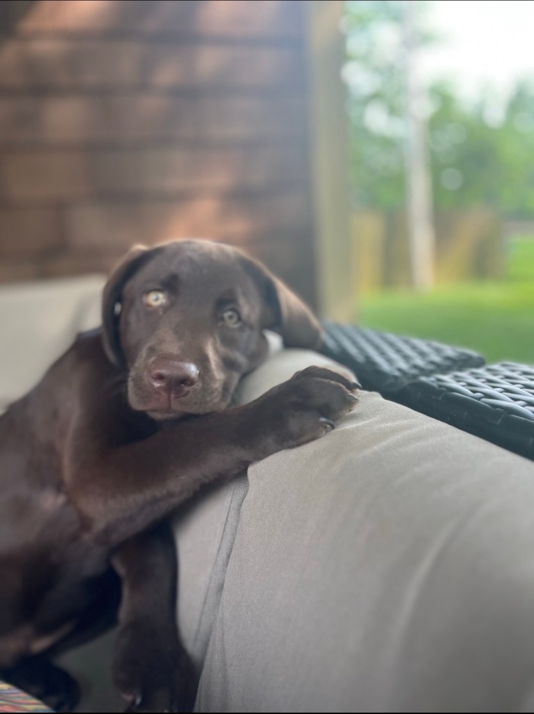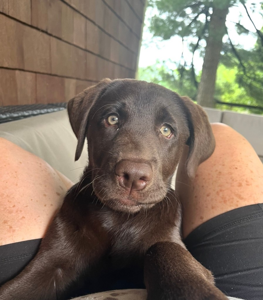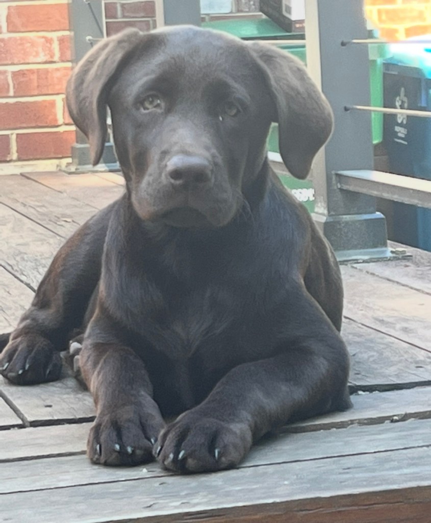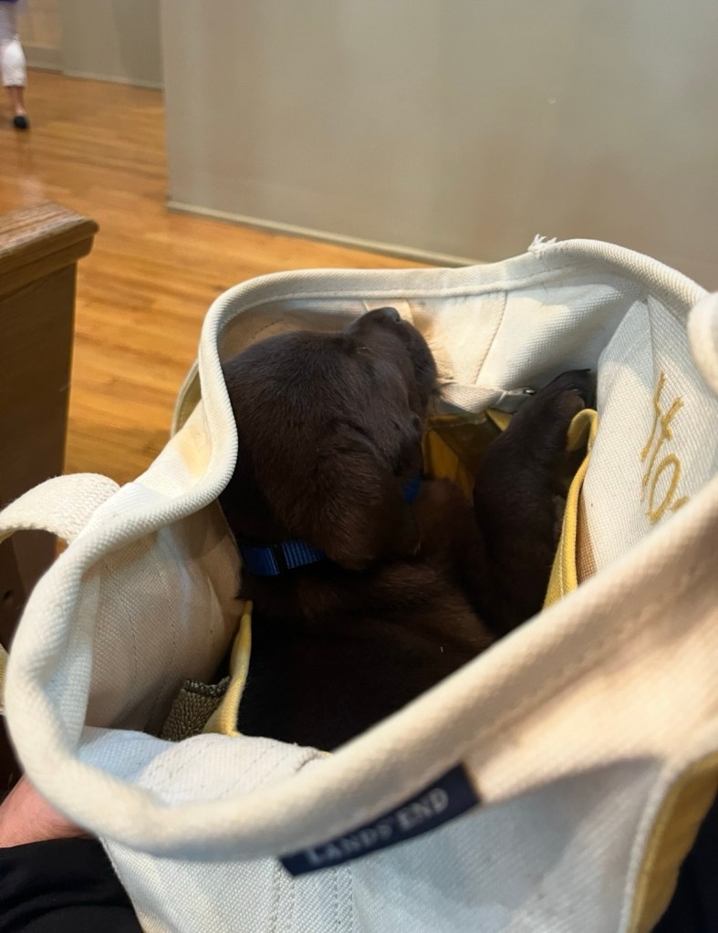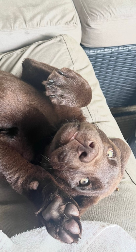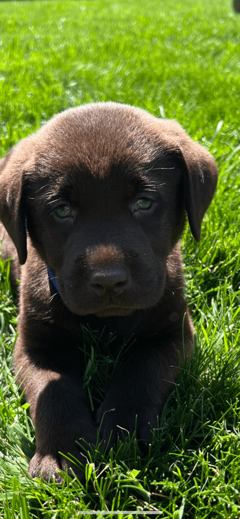 So, my new Mom and Dad came and saw me play with my two chocolate brothers. There were some sisters, but they wanted a boy. They picked me out because my brothers were in a fight and I was more interested in the humans. Isn’t that silly?
