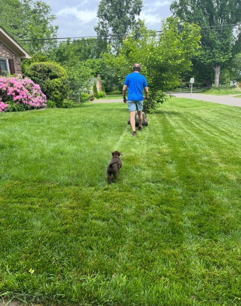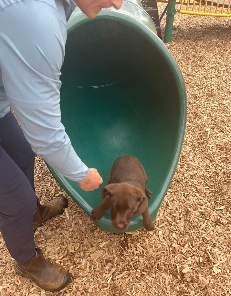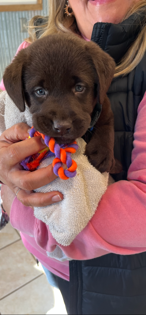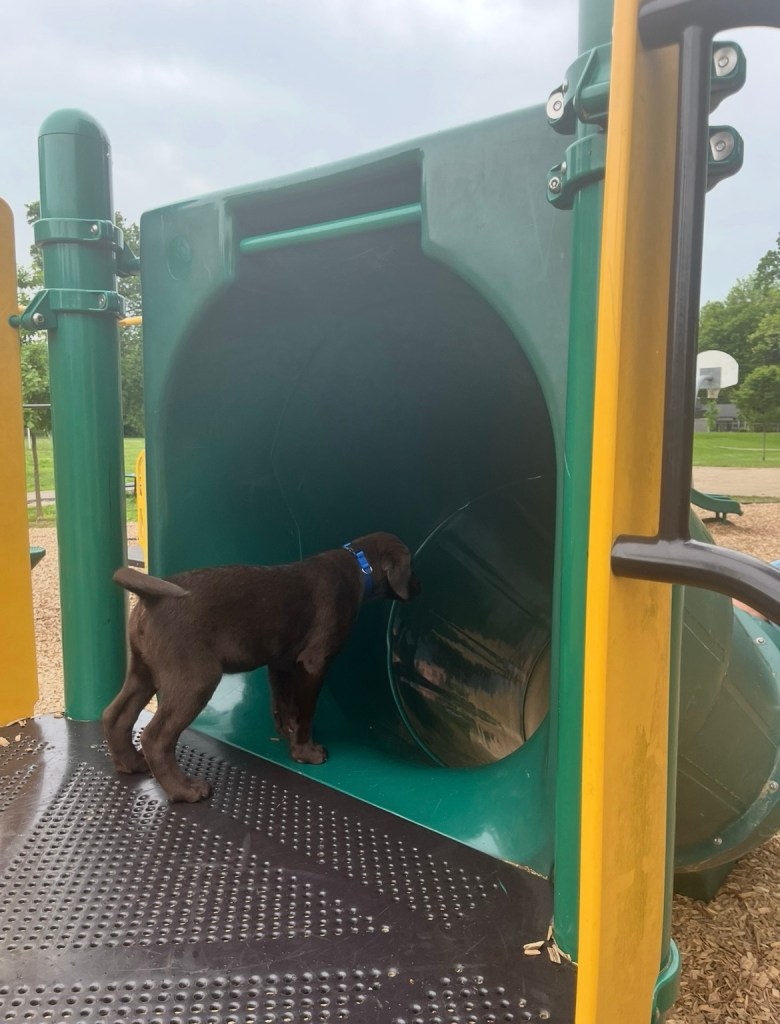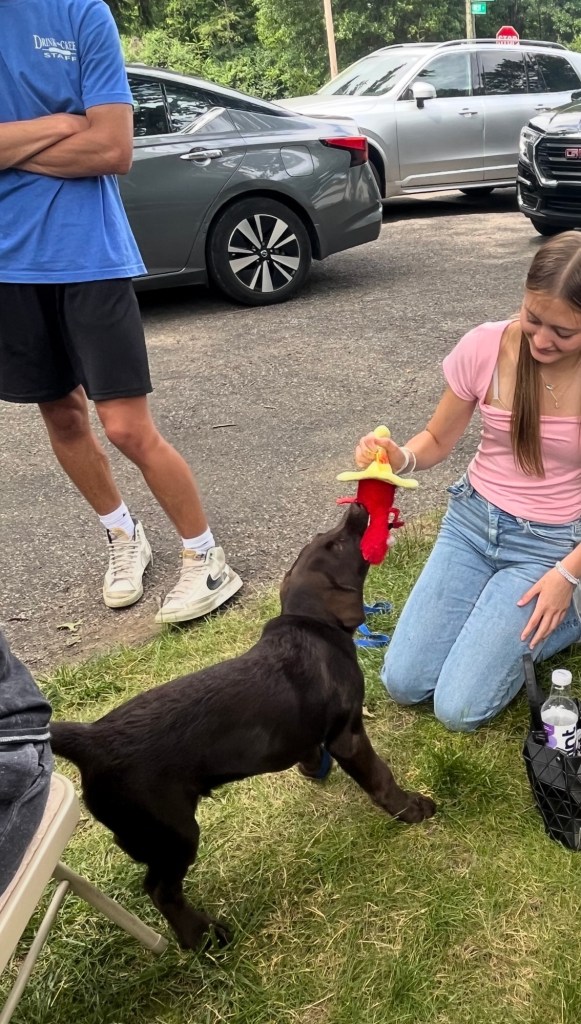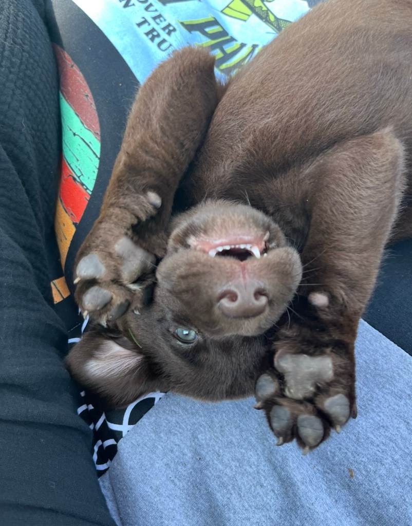 So, my new Mom and Dad came and saw me play with my two chocolate brothers. There were some sisters, but they wanted a boy. They picked me out because my brothers were in a fight and I was more interested in the humans. Isn’t that silly?