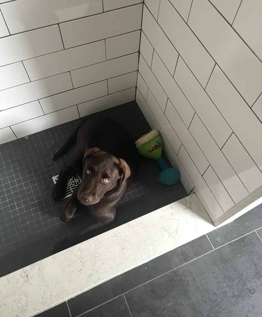 I liked to sleep in my dog wash. Don’t try to wash me – are you kidding? I just liked to sleep here.
