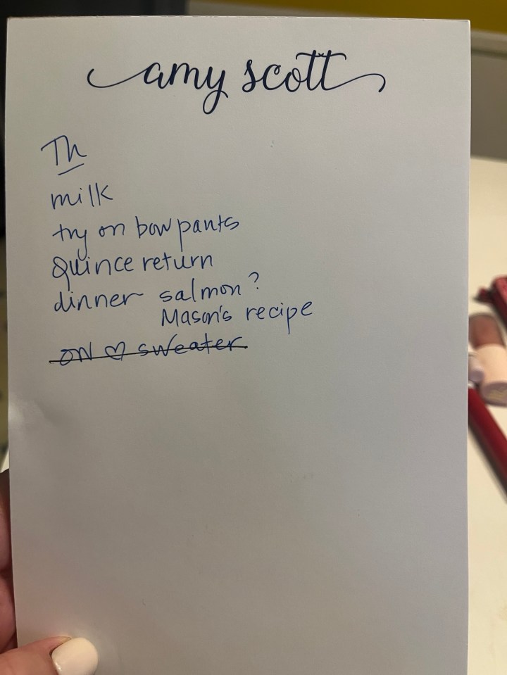 I purchased this personalized notepad from Amazon and this is where I write my daily lists: