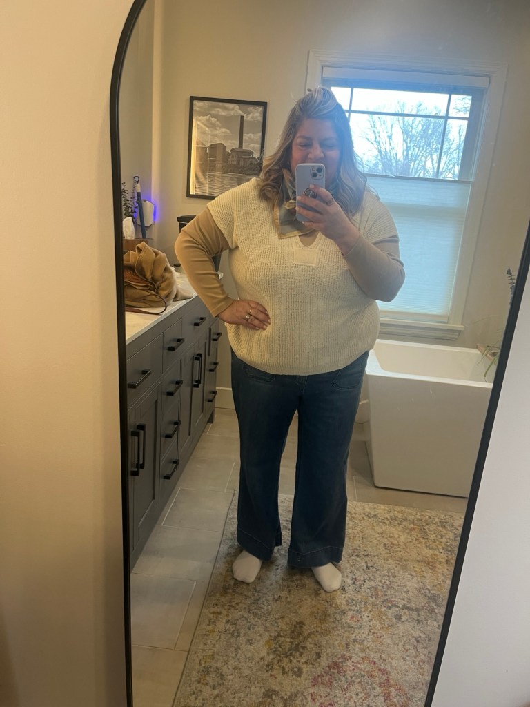 This was a try-on but I will wear this out in the spring I think! This is my new Target sweater and the Amazon jeans.