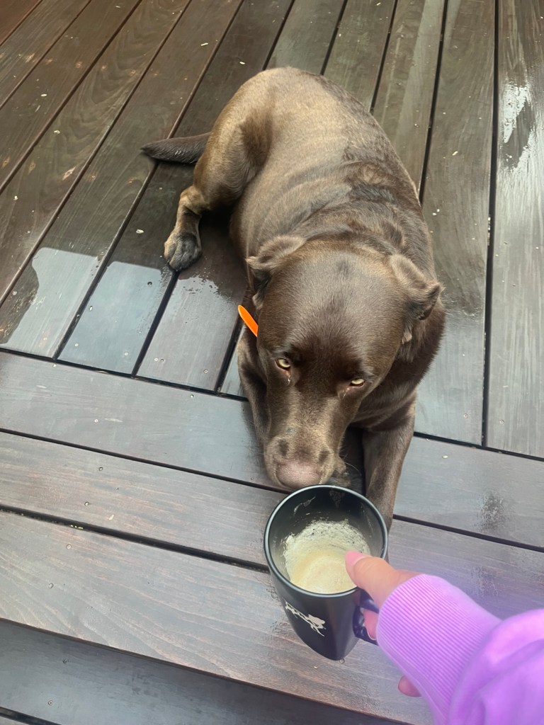 I got to start my Friday with patio devotional and coffee in the light rain…