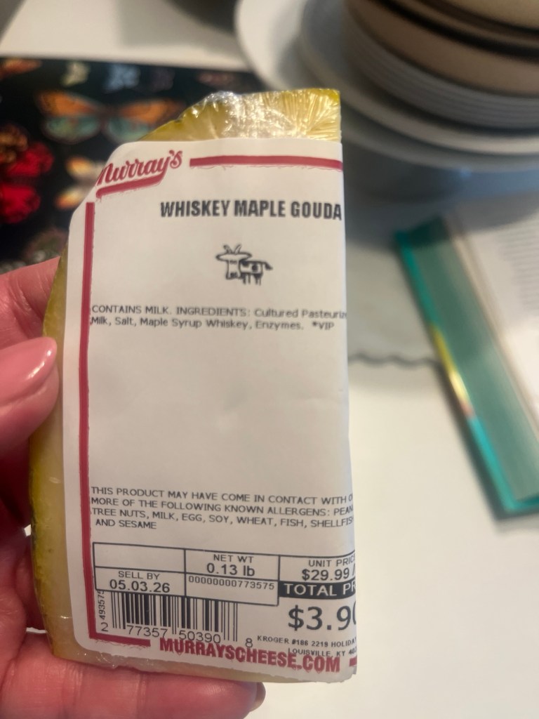 There’s a young cheese guy at Kroger who likes to hand out samples. He is very passionate about cheese. He made me taste this and it’s so good.