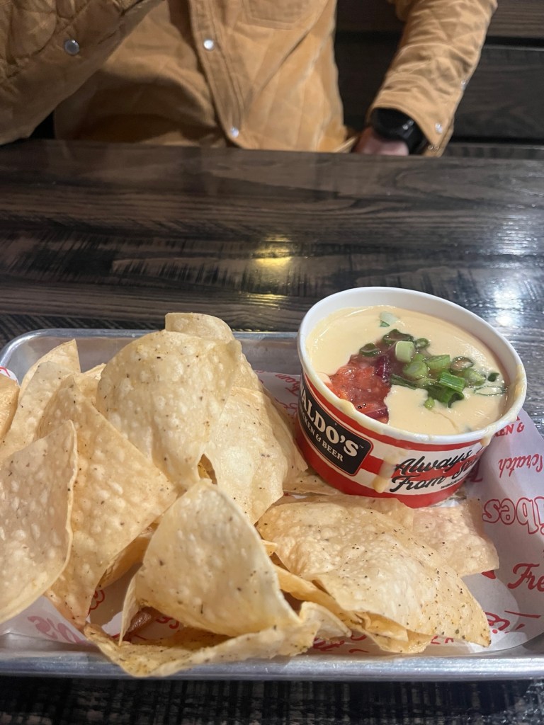 Then, Tom and I went to Waldo’s Chicken and Beer and got some queso: