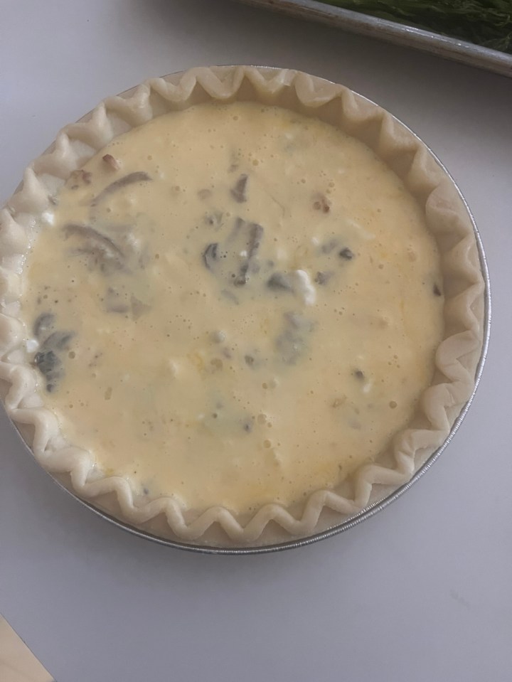 bacon, mushroom, and onion quiche,