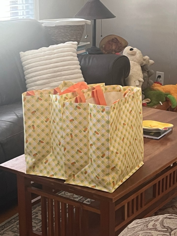 Friday I only had to get Easter basket stuff. I had some but needed to finish the project. I went to Kroger and Walgreen’s and didn’t go overboard. I thought this carrot bags were perfect for an adult “basket”. I did not do Valentine’s gifts this year but I did do this. I come by it honestly; my mom made a big deal of all the holidays both the religious and the secular parts.