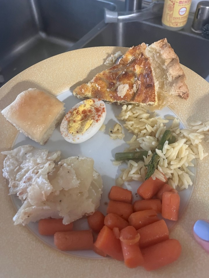 au gratin potatoes, ham, and chicken schnitzel tenders (I think I made that up!) because one of my kids doesn’t eat ham.