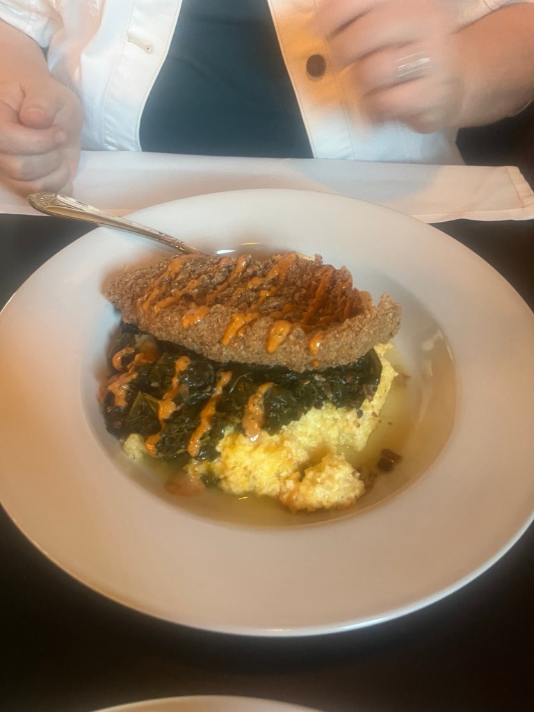 Kara loved hers, too. She got catfish, cheese grits, and kale.