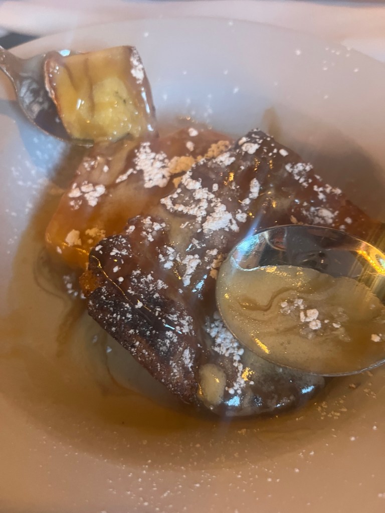 We split some bread pudding and the sauce was so good.