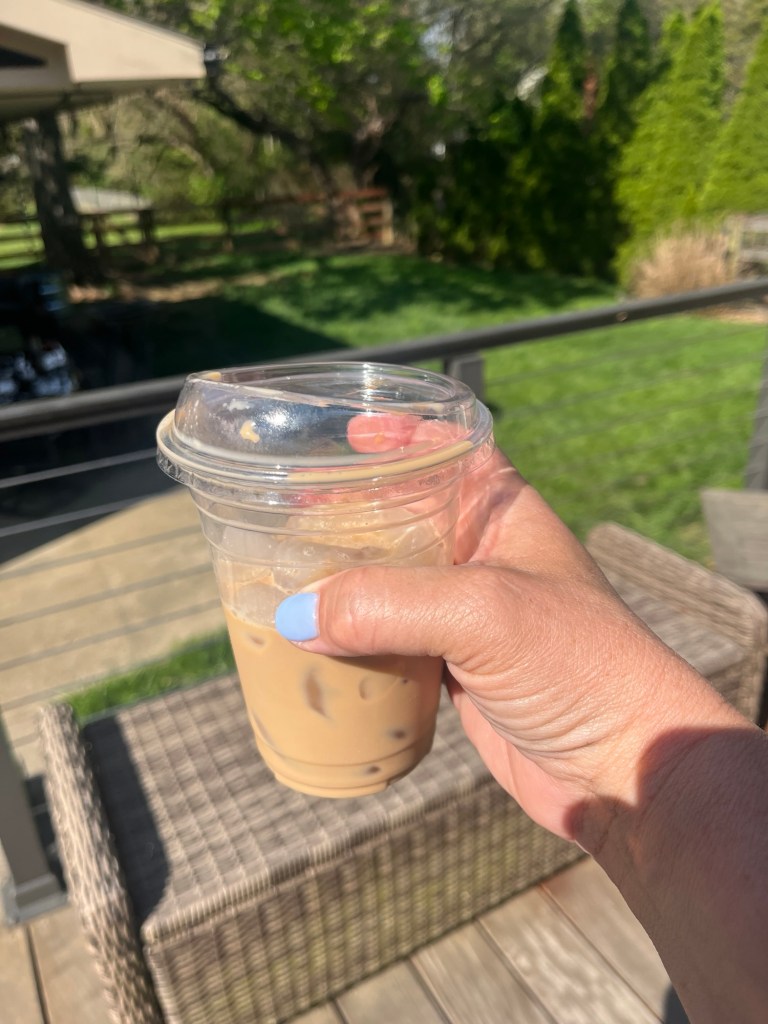 Friday, I made myself an iced coffee. I ordered cups so that I feel like I spent $8! I have been using espresso powder, water, brown or white sugar, skim milk, and a touch of creamer.
