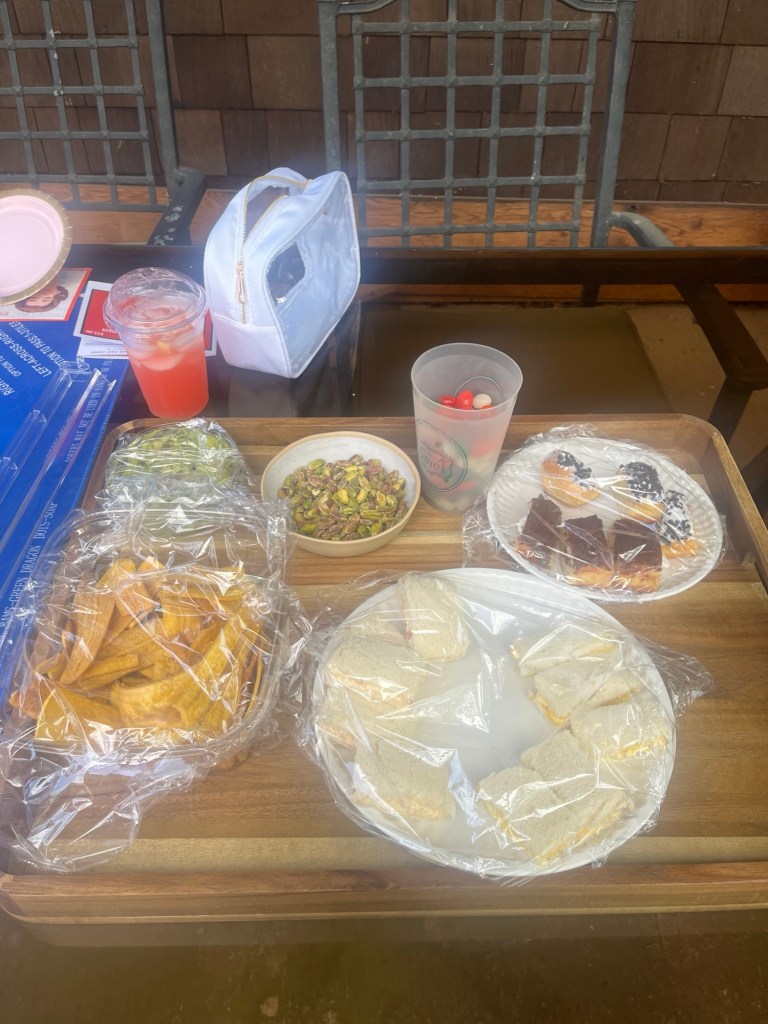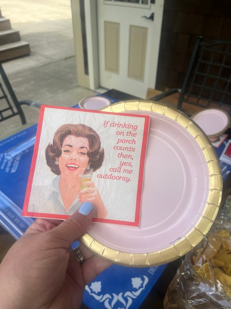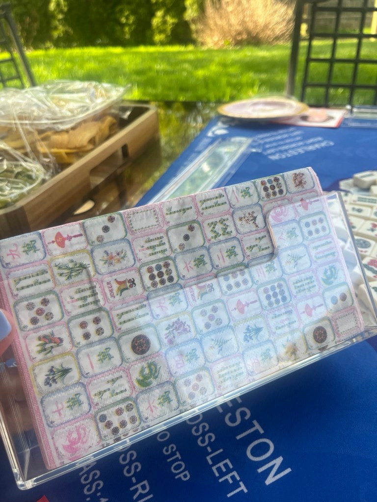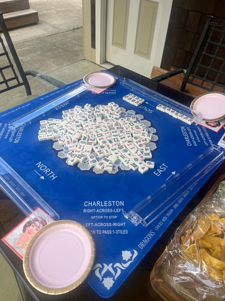 Then, my friends came over for patio mah jong. I had the Master’s on the outdoor tv and made pimento and egg salad sandwiches and had jelly beans, pistachios, cut up donuts, plantain chips, and guacamole and I made the Master’s Azalea drink – lemonade, vodka, and grenadine.