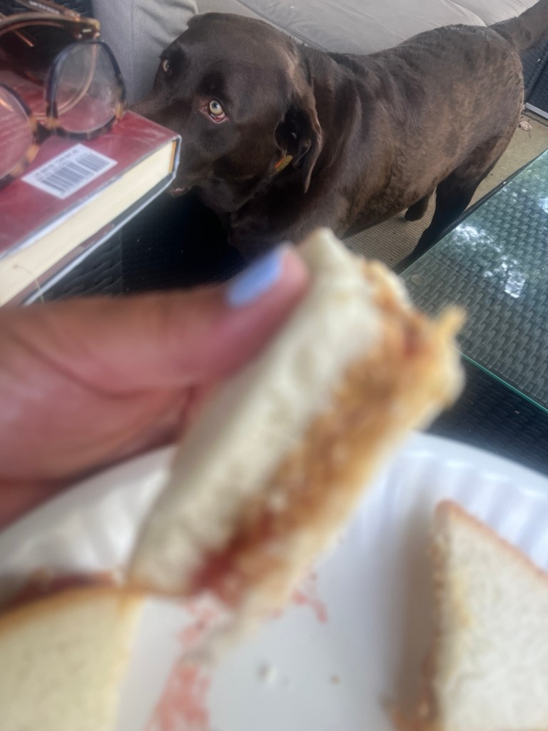 Sunday was lazy. I went to Kroger for just a few things and spent most of the day reading outside. I had a good old fashioned peanut butter and jelly for lunch.