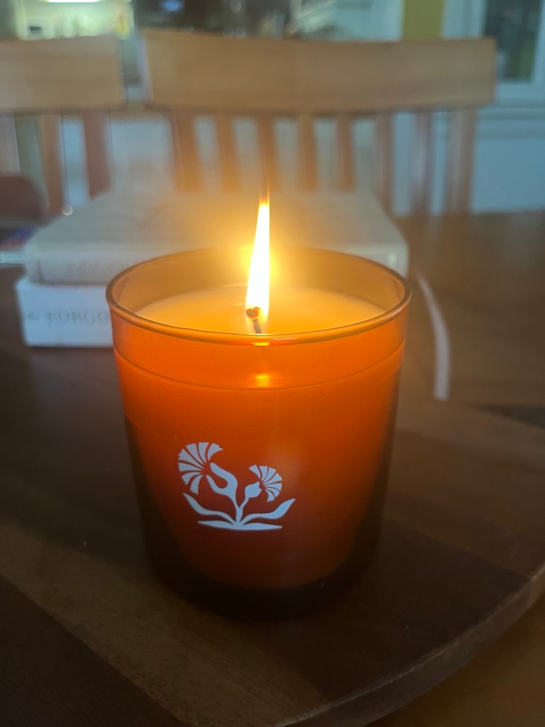 I have been enjoying my new free candle from the book event swap on Sunday! Speaking of new places, I can’t wait until the new bookstore opens that will have wine and books. The new bookstore gave out the candles and a really nice tote bag with two pockets for wine.