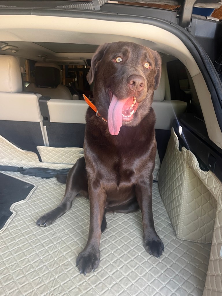 Running errands! His tongue seems to grow!