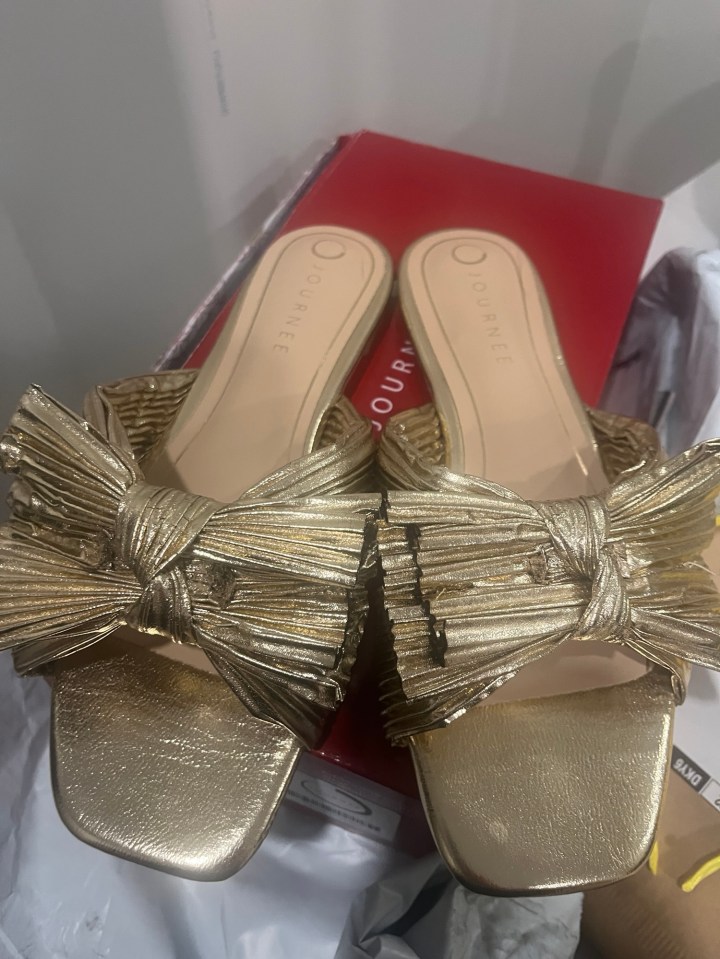 And my gold sandals came in and I think they will work! They are very comfortable and I really love the crazy bows. They are a copycat of very expensive Loeffler Randall sandals.