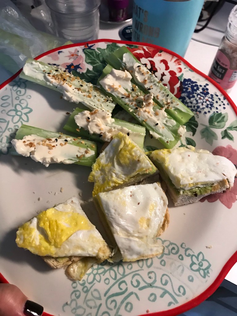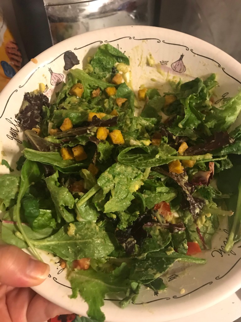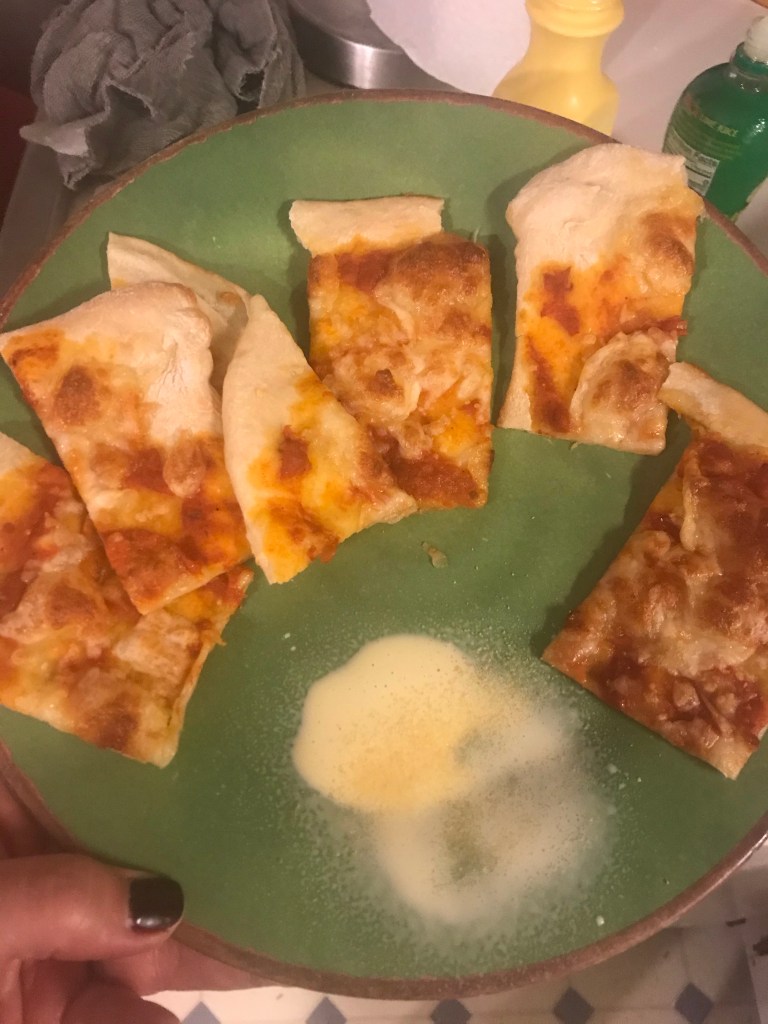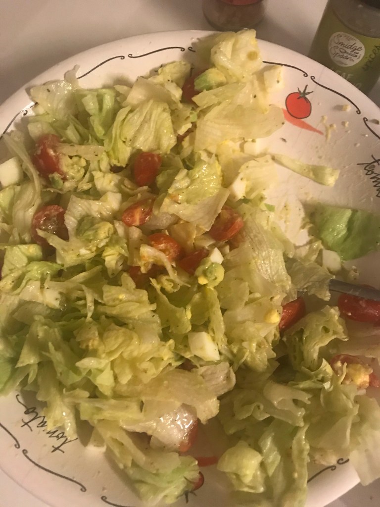 I went home and Tom had Totino’s and I had salad and skinny pizza dough pizza so we were both happy!