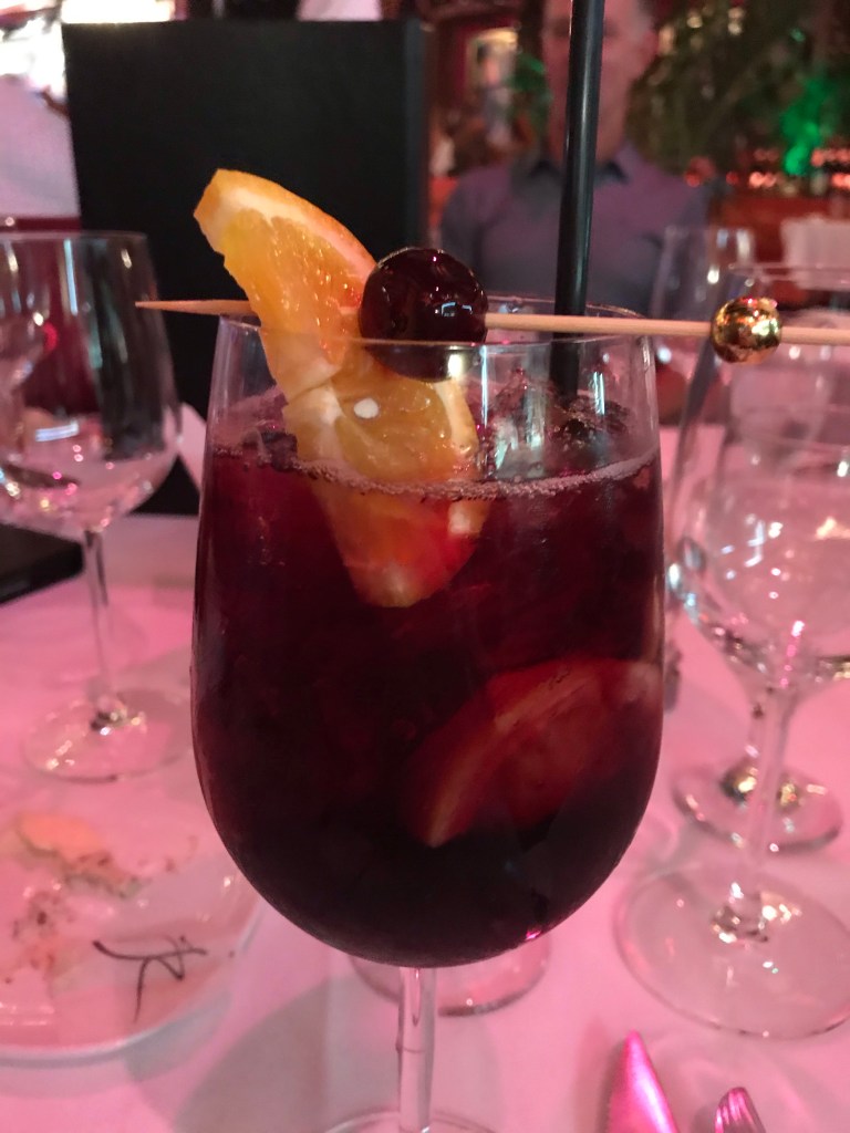 I had a sangria and my friend and I split sushi, brussel sprouts, and fries.