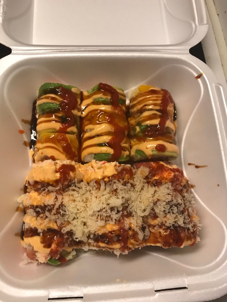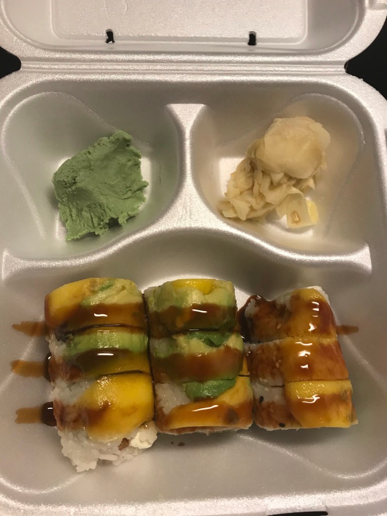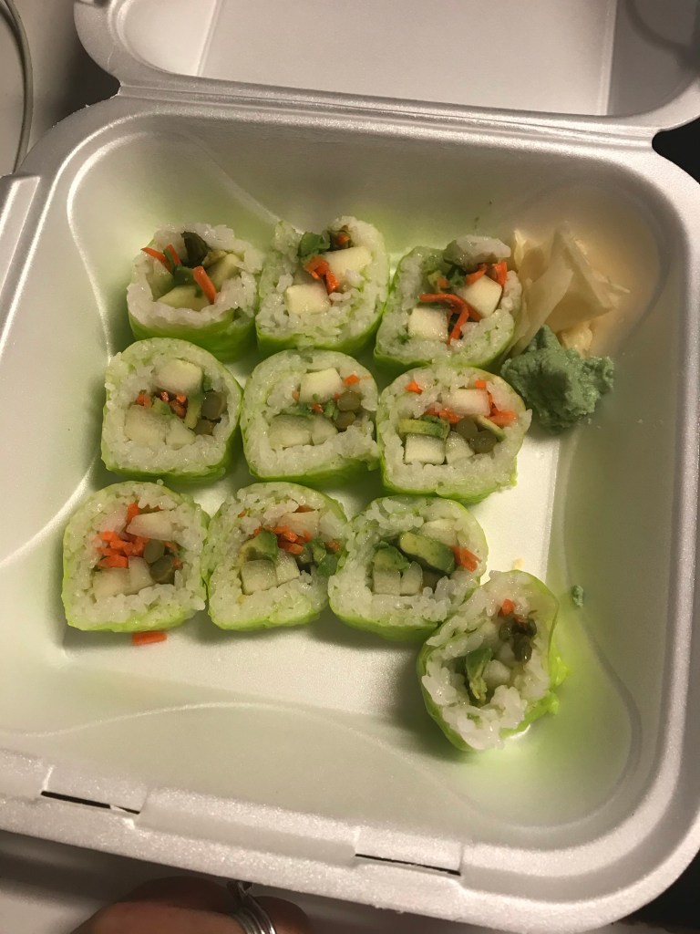 Then, the boys requested take out sushi so we went and ordered it. We got a few different rolls to share.