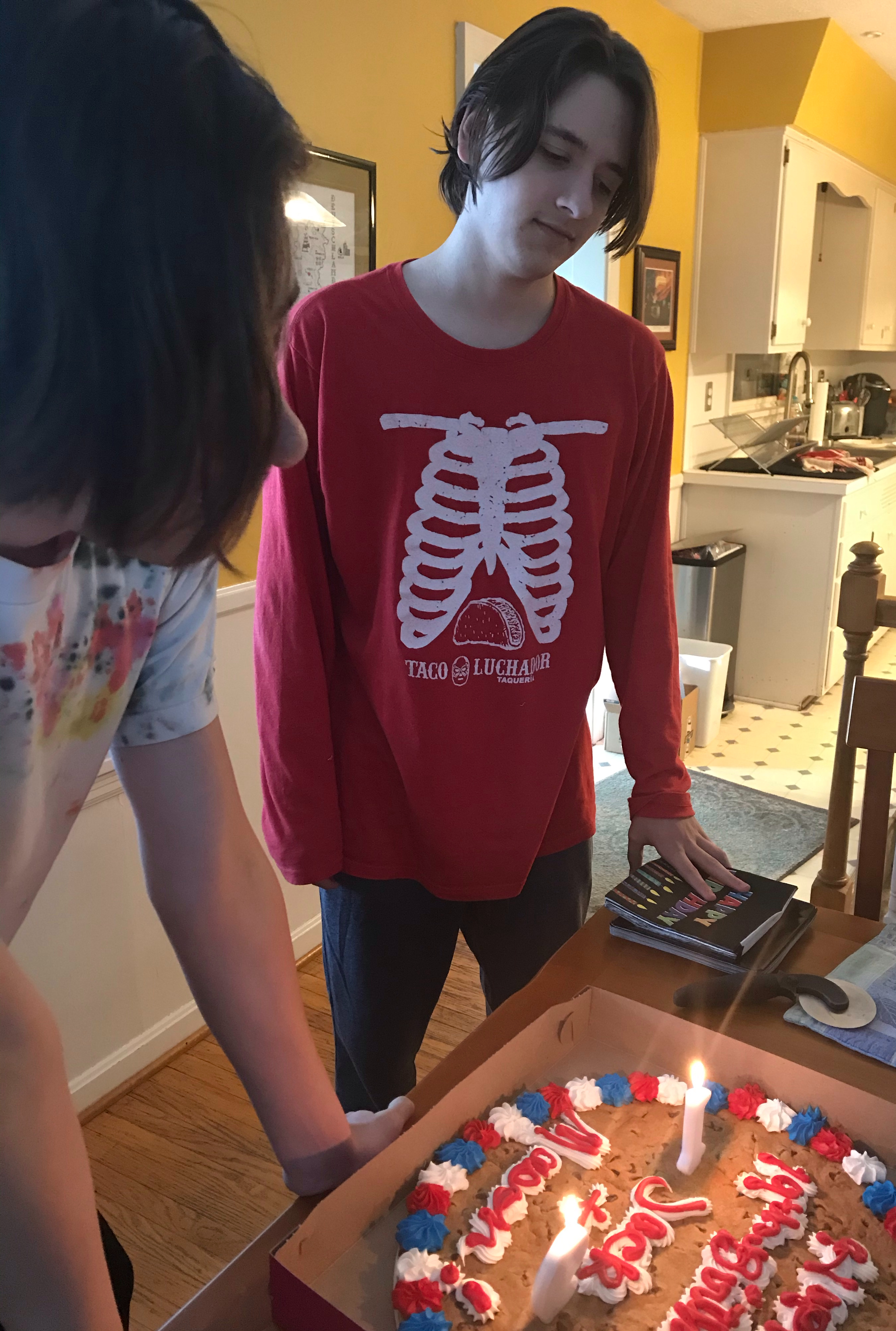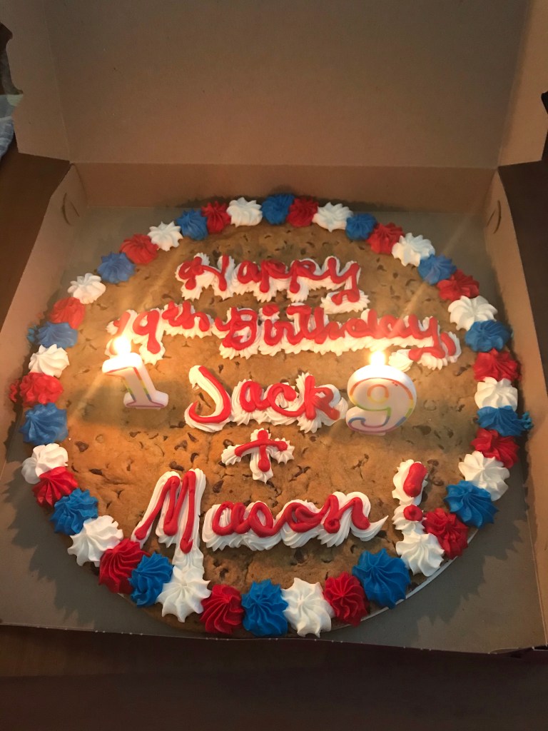 Tom went and got donuts per Mason’s request and I made chocolate chip pancakes for Jack’s request.