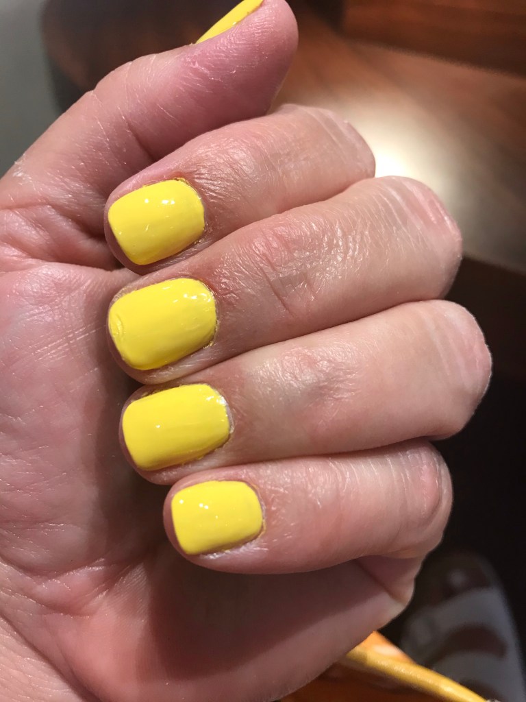 I had had dip nails for the last two months and I just don’t want the commitment of getting it done every 3 weeks. I think something is wrong with me because I can hardly sit to have it taken off and put back on. Is anyone else like this? I had my white removed and just did a regular mani in yellow! I am thinking about trying Olive and June. Anyone tried it?