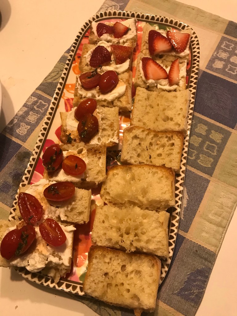 I tried Half Baked Harvest’s whipped ricotta toast with marinated tomatoes on some pieces and honey and strawberries on some pieces. I don’t think I will make it again. Goat cheese is better in my opinion. I don’t think I’m a ricotta person. I use cottage cheese for my lasagna because that is what Pioneer Woman does.