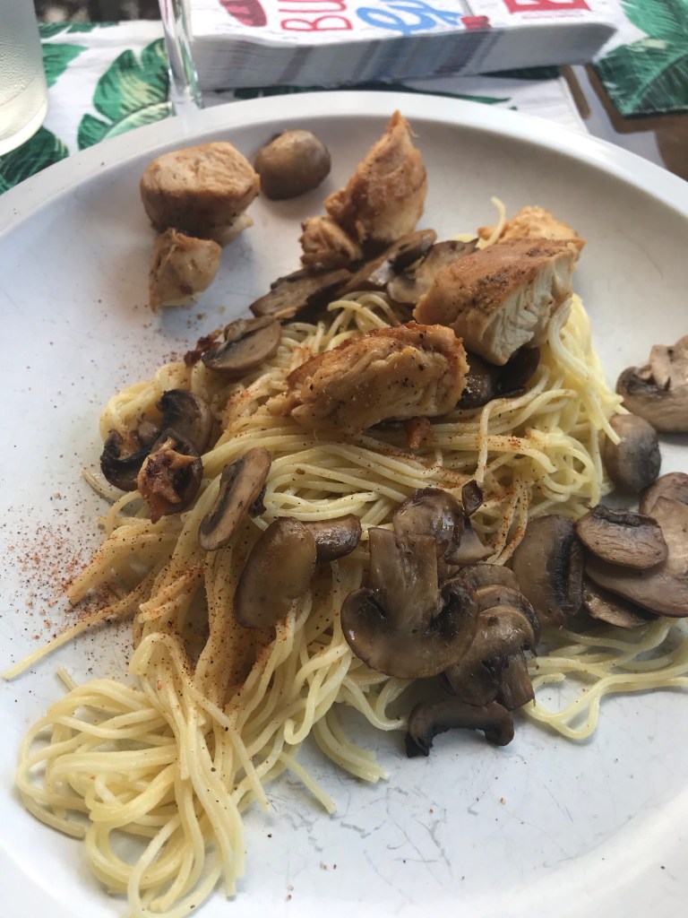 And, I made a spicy angel hair alfredo with chicken and mushrooms.