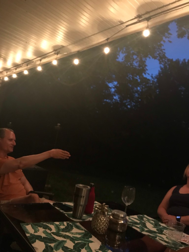 Tom and I hung out on the patio after Tom did a ton of yard work and I did a ton of housework.