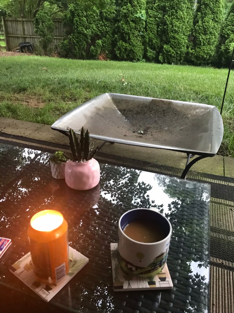 Sunday morning we woke to some light rain. I had my coffee with my candle and read a bit – one of my favorite summertime things!
