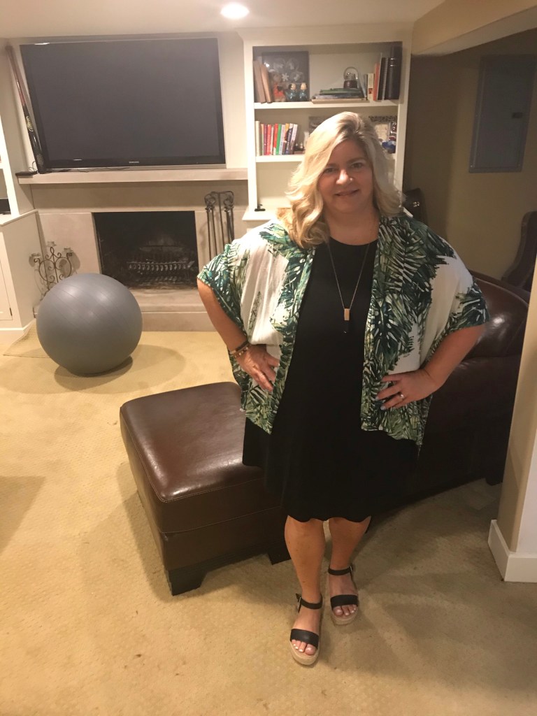 Rare indoor photo of my outfit I wore to the celebration of life for our attendance clerk. Sadly, she lost her battle with cancer last week. Old Navy tank dress, Nordstrom kimono, and Soda sandals. It was held in the top floor of a bar but I wanted to dress up a bit. Again, I would call this a teacher outfit.