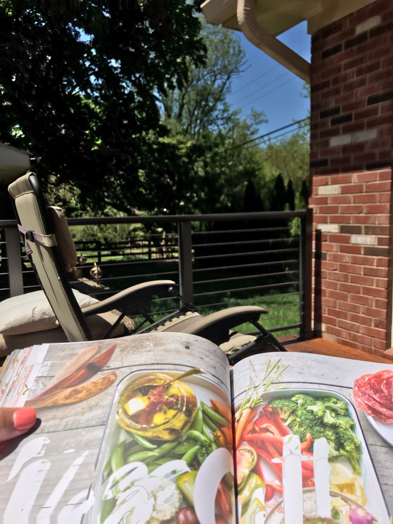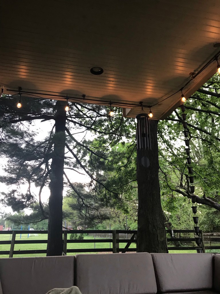 Saturday was gross and rainy. It seems like lots of our Saturdays are like this lately. I set myself up on the patio to read and Mason joined me. He was watching Star Trek, though. One of the best things we did last year was to get a WIFI extender that goes to the patio.