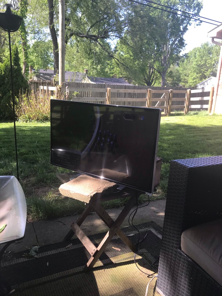 Then, we came home and watched some tv on the patio because we kept our bedroom tv outside. I am anxious to permanently put a tv on the patio. But, this worked for now!